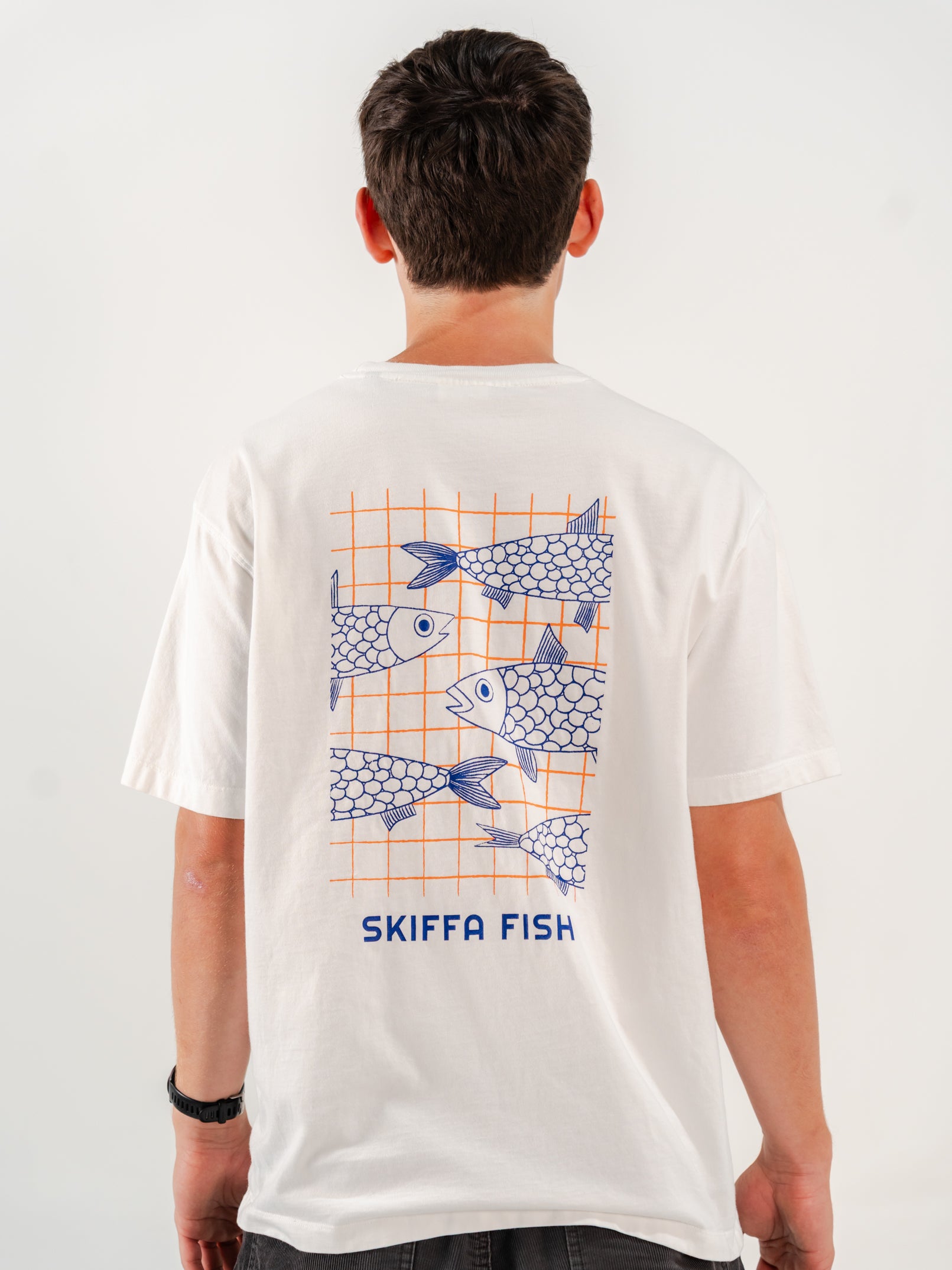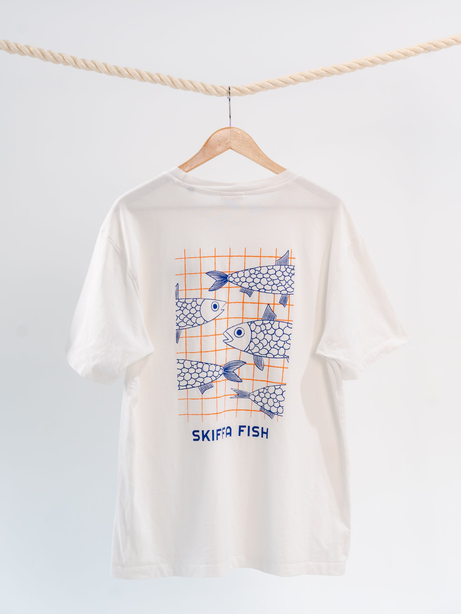 Fishy Fishy! SKIFFA is all about the sea and the fish. Therefore, we have dedicated this t-shirt to the FISH of the sea. The t-shirts are produced from biological cotton and sewed in the Netherlands.