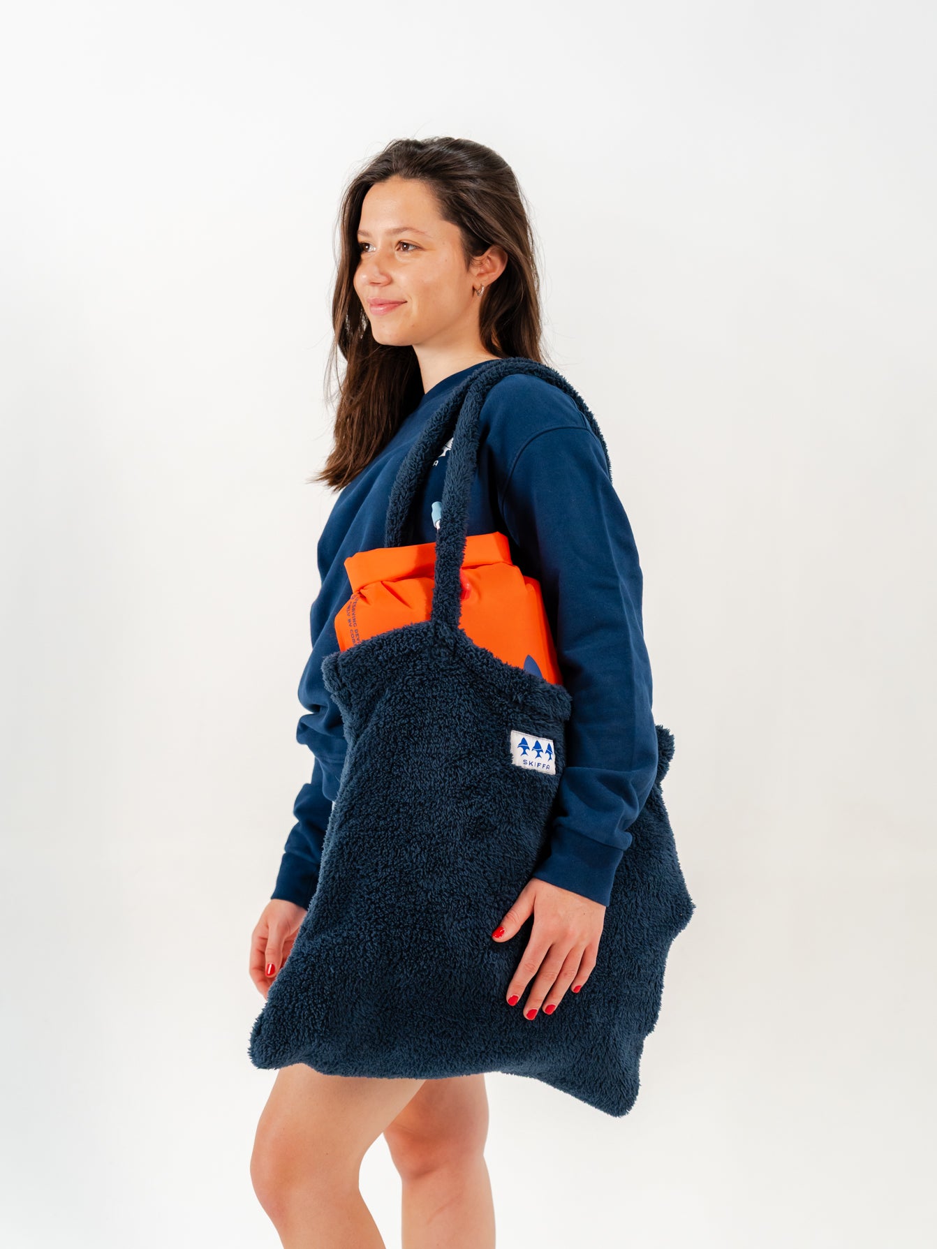 The squared medium SKIFFA Tote bag is just the right size for your day at the beach, lake or other leisure location. The bag has an inner pocket for a phone, keys, purse or a little bit of makeup.