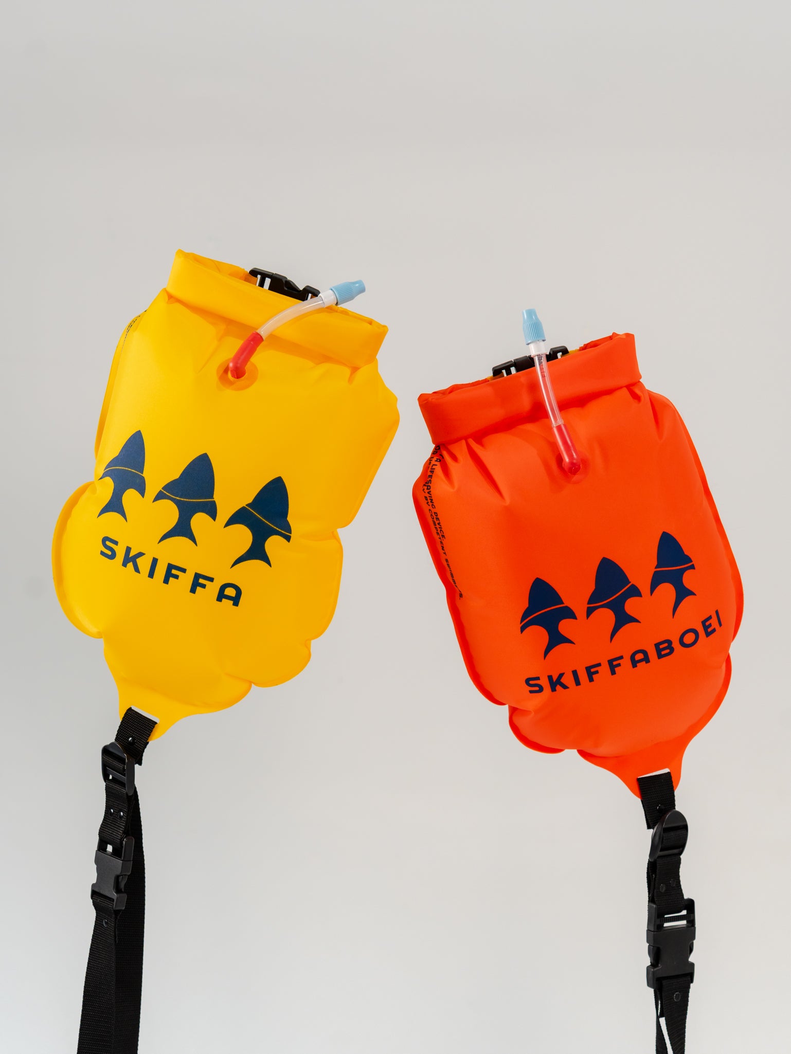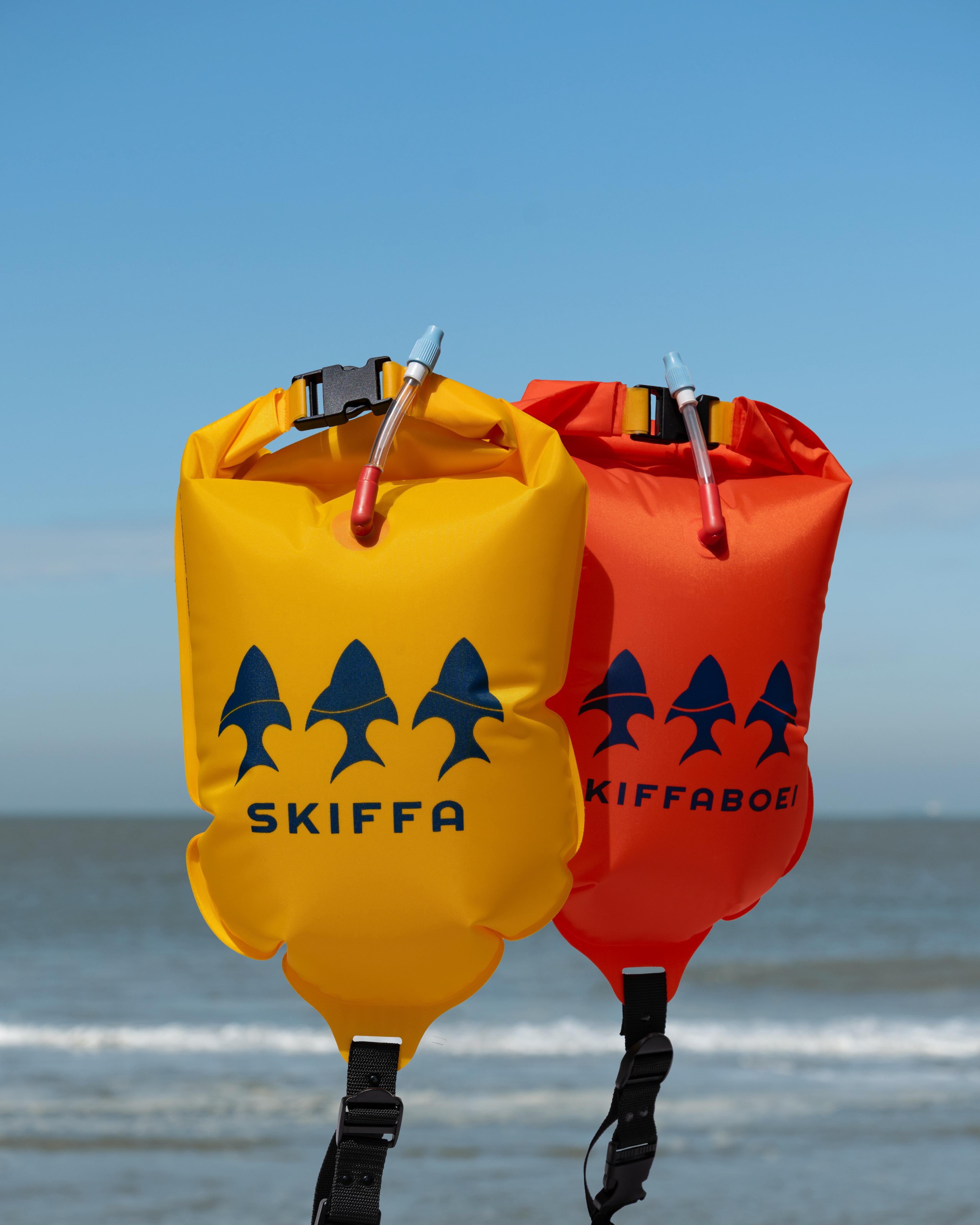 De Skiffaboei is goed zichtbaar in het water, zorgt voor extra drijfvermogen en is eenvoudig opblaasbaar plus makkelijk mee te nemen en zo duurzaam mogelijk gemaakt.